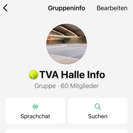 Halleninfos werden daher von uns zusätzlich auch immer an die Gruppe "TVA Verein" versendet.
